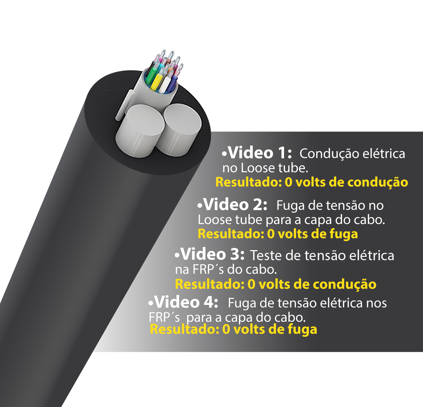 O cabo composto por matéria prima de qualidade incorpora um fio de aço especial como elemento central de sustentação e dois fios de aço laterais para tração, proporcionando flexibilidade e grande resistência superior especialmente em ambientes externos.